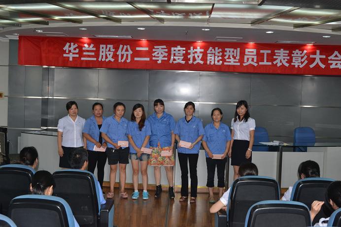 4月,公司根據《給技能型一線員工激勵政策的通告》規(guī)定對膠塞生產部一線員工第一季度工作進行技能評定,并對考評結果發(fā)放技能補貼,此項政策取得了員工的一致好評。9月19日,值中秋佳節(jié)之際,華蘭股份第二季度技能型員工表彰大會在公司七樓會議式正式召開。總經理對此次會議的召開給予重視,并親自參會頒發(fā)獎金。