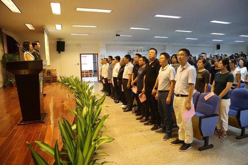 接著由李忠校長帶領全體教師宣誓:忠誠黨的教育事業,履行教師神圣職責,爭做四有好老師,立志為江陰教育發展奉獻力量。