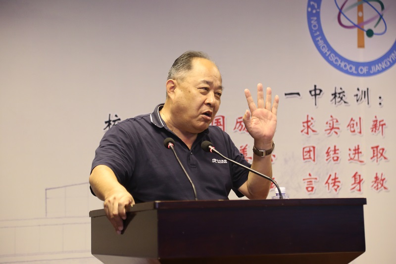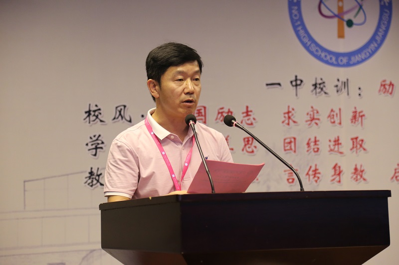 首先,李忠校長為典禮致辭,他對華國平先生對教育的赤誠之心,對江陰發展的關切之心,對國家民族的拳拳之心表達了誠摯的敬意,對華國平先生、華智敏先生以及江蘇華蘭藥用新材料股份有限公司對一中的發展、對教育事業發展的大力支持表示了感謝,對全體老師表達了節日的祝福,對獲獎的團隊表示了祝賀。