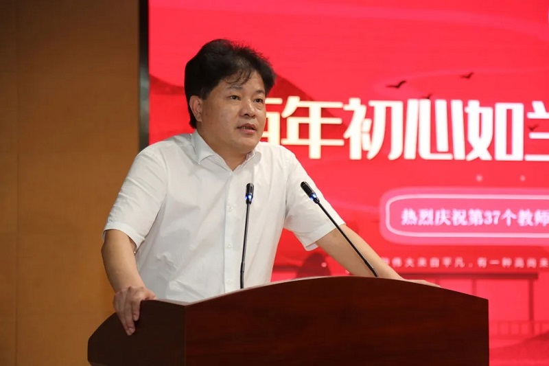 接著華國平董事長上臺,先深深鞠了一躬,表達(dá)對一線教師的敬重和感謝。感謝所有在教育的天地里默默守望的老師們。在講話中尤其是對奮戰(zhàn)在班主任崗位上的老師們由衷的敬意,表達(dá)了對老師們最誠摯的祝福。接著他鼓勵大家做一名有家國情懷的人民教師。企業(yè)需要不斷優(yōu)化產(chǎn)業(yè),增強競爭力,教育更需要每一位教育工作者勤于思考,提高課堂效率,因材施教,提升學(xué)校辦學(xué)品質(zhì)。華國平先生的發(fā)言誠摯而充滿了力量,贏得了領(lǐng)導(dǎo)、老師們熱烈的掌聲。