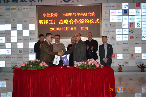 2019年2月19日,江蘇華蘭藥用新材料股份有限公司與上海電氣中央研究院“智能工廠戰略合作簽約儀式”在華蘭股份江陰工廠舉行。公司董事長華國平、總經理華一敏、董事會秘書趙士軍等領導與上海電氣院長、副院長、首席工程師及項目組成員參加儀式。
